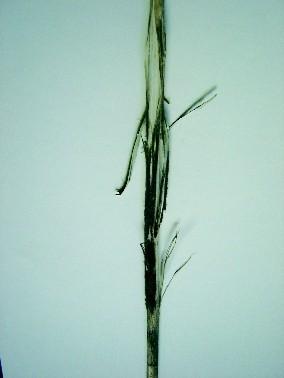 Cette maladie peu nuisible est causée par Sclerotinia sclerotiorum (champignon identique à celui que l'on trouve sur colza, tournesol, pois...).
