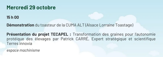 Le 29 octobre, Patrick Carré, expert stratégique chez Terres Inovia présentera le projet TECAPEL 2 et effectuera une démonstration du toasteur de la CUMA A.L.T.