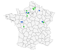 Carte des 19 essais conduits par Terres Inovia (en vert) et BASF