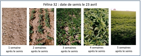 Les photos ci-dessous illustrent la cinétique idéale de croissance pour le chanvre.