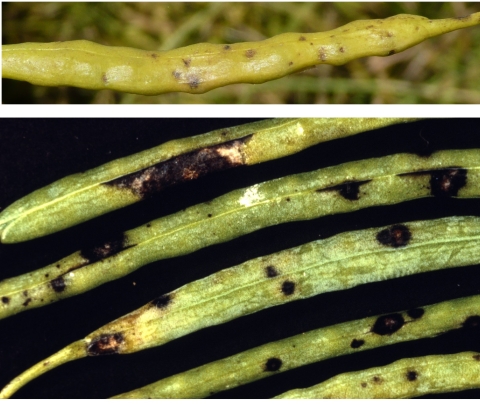 Des champignons saprophytes et/ou moisissures (type cladosporium, botrytis) peuvent également se développer en parasite sur des siliques sénescentes (donc plus tardivement dans le cycle) et/ou lésées par un évènement antérieur.