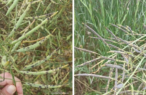 La fin de cycle pour les colzas 2024 est à l’image de la campagne : très arrosée. L’humidité ambiante favorise certains pathogènes sur une grande partie du territoire. Le brunissement ou noircissement des siliques interroge. Point sur la situation et aide au diagnostic en culture.