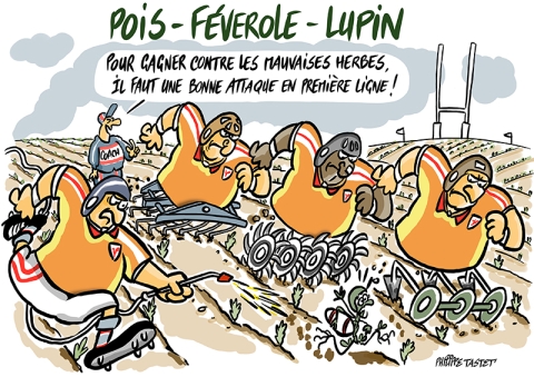En raison du faible écartement du pois, la herse étrille ou la houe rotative sont plus envisageables que le binage (à moins d’utiliser une bineuse à céréales) en substitution et/ou en complément du programme herbicide.