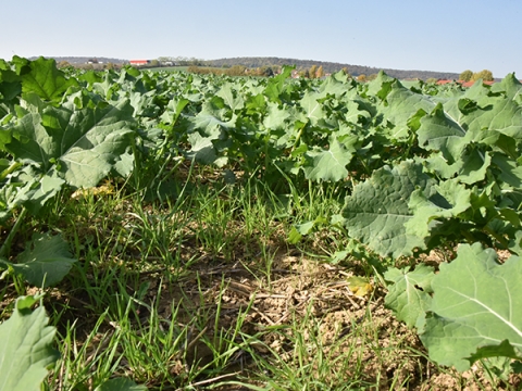 Pour des colzas dotés d’une forte biomasse (> 1.5 kg/m²), les volumes de végétation peuvent être élevés. Les biovolumes et les longs pétioles (plus de 50 cm) font alors obstacle aux herbicides racinaires.