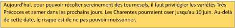 - Semis du 1er juin reporte la récolte à début octobre dans les Charentes, le sud Poitou et le sud Vendée