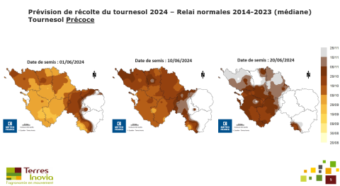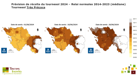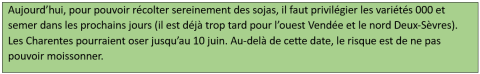 - Semis au 10 juin retarde la récolte à mi-octobre pour les Charentes, les plaines du sud Deux-Sèvres et du sud Vendée