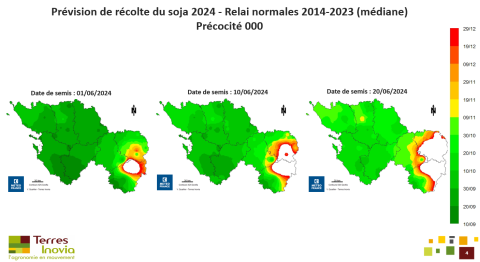 Même exercice pour des sojas 000 avec des prévisions de dates de récolte :