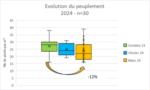 Hormis les parcelles à zones hydromorphes, où les pertes peuvent être importantes, les pertes de pieds hivernales sont faibles.