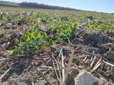 Les pois d’hiver, semés entre la mi-novembre et la mi-janvier, sont entre les stades 1 feuille et 7 feuilles. Les enracinements sont bons et les nodosités, dont la mise en place a été freinée par les fortes humidités de sol, se développent doucement.
