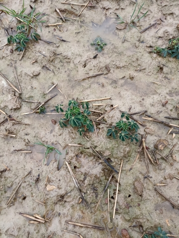 Pois et féveroles d’hiver sont au stade 2 à 4 feuilles selon les dates de semis. Les enracinements sont bons, et malgré les cumuls d’eau parfois encore importants dans certains secteurs, notamment à l’Ouest (cf. carte), les nodosités se développent correctement.