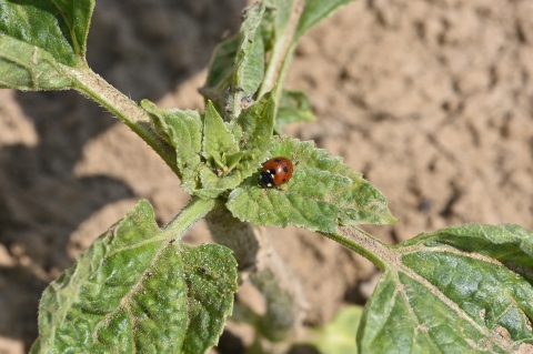 Coccinelle et pucerons verts sur tournesol - Crédit photo : L. Jung