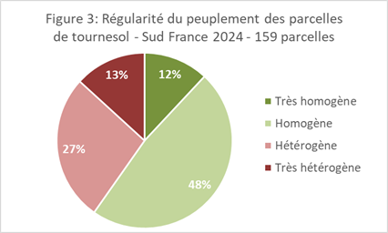 Toutefois, depuis début juin et jusqu’à date de rédaction de cet article, les sommes de température et les pluies régulières offrent des conditions favorables à la croissance et au développement de la culture. Résultent de ce scénario climatique compliqué une palette de situations très différentes au sein des parcelles de tournesol du Sud France, renforçant l’intérêt d’en réaliser un état des lieux estival.