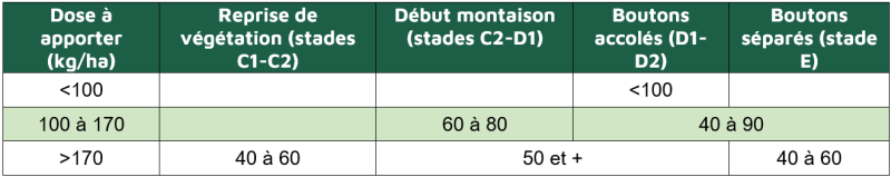 Dans tous les cas, ne pas apporter plus de 100 kg/ha d’azote en une fois.