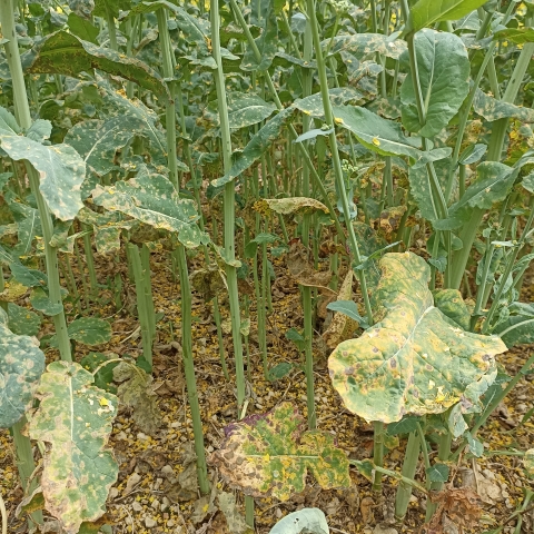Pendant l’automne et en sortie hiver, les tâches de mycosphaerella étaient assez présentes sur les vieilles feuilles. L’inoculum était bien là, mais les symptômes ont peu évolué sur le 1er trimestre. Maladie fréquente en Poitou-Charentes/Vendée ces dernières années, elle est souvent prise en compte pour le choix du fongicide pivot appliqué au stade G1 – 10 premières siliques de moins de 2 cm.
