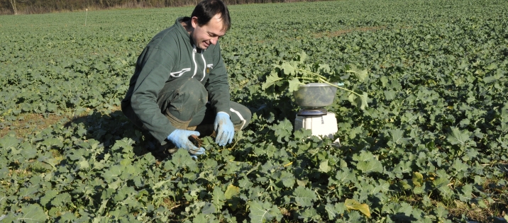 Pour estimer ces quantités d’azote absorbées par le colza, les pesées de matière fraîche des parties aériennes du colza sont une méthode simple et fiable (1). Prélevez les plantes sur au moins 2 m² par parcelle, répartis en 2 placettes distinctes, en évitant les bordures. Coupez les plantes au ras du sol et pesez-les précisément. Divisez le poids obtenu par la surface prélevée pour exprimer le résultat en kg/m². Réalisez ces pesées à l’entrée et à la sortie de l’hiver afin de connaître (i) la quantité d’azote présente dans le colza à la reprise de végétation et (ii) celle qui sera minéralisée au printemps à partir des feuilles gelées, tombées pendant l’hiver.