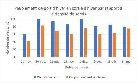 Graphique 1 : Peuplement de pois d’hiver en sortie d’hiver par rapport à la densité de semis