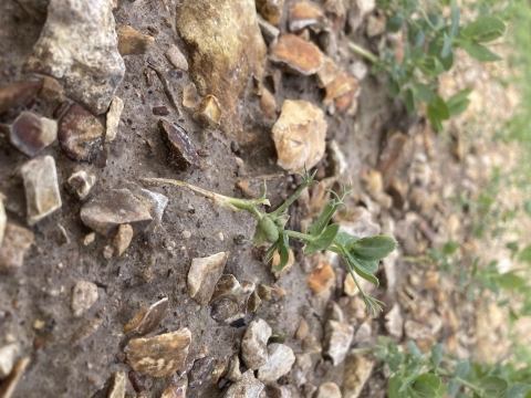 Photo 1 : Pincement à la base de la tige de pois d’hiver dû à un phénomène physique