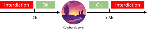 Les produits insecticides autorisés doivent être homologués pour cet usage et bénéficier de la mention abeilles (se référer aux étiquettes des produits). De plus, ils doivent être appliqués uniquement dans la page horaire suivante :