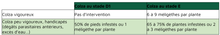 Seuils d’intervention en fonction de l’état du colza et de son stade