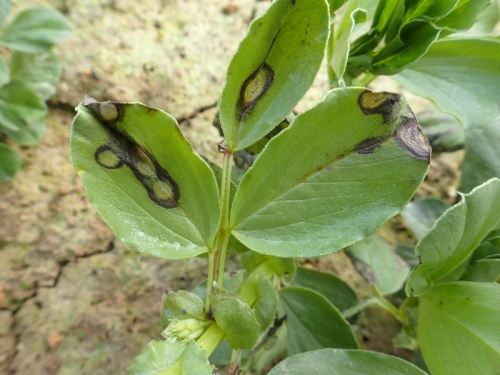 Symptômes ascochytose sur féverole d'hiver - Crédit photo : Terres Inovia