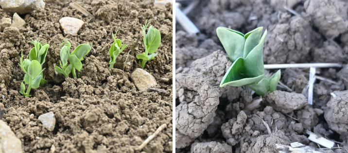 L’objectif est d’obtenir une bonne structure de sol pour assurer l’enracinement du pois et développer les nodosités. Le lit de semences doit être meuble sur les 8-10 premiers centimètres du sol pour favoriser un bon contact sol/graine et une levée rapide. Une structure poreuse sur les 15-20 premiers centimètres permettra aux nodosités et radicelles de se développer correctement. Le pois est très sensible aux asphyxies racinaires, les zones compactes doivent être évitées afin de favoriser le ressuyage.