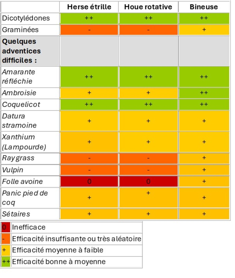 Efficacité des outils en fonction des espèces d'adventices