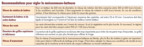 Un bon réglage de la moissonneuse-batteuse est essentiel pour réduire les pertes et garantir la qualité des graines