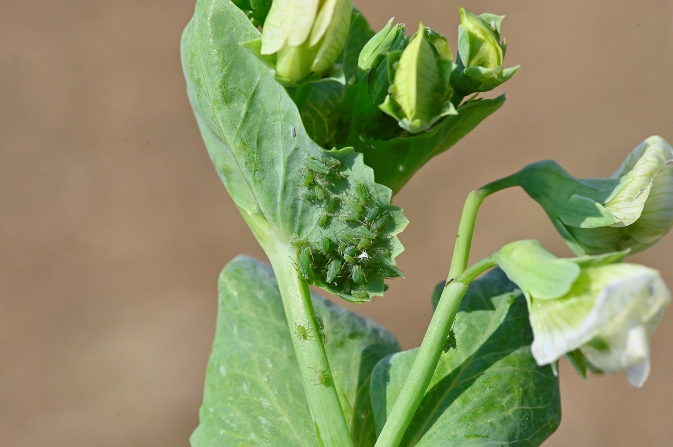 La majorité des pois de printemps se situe entre les stades 4 et 7 feuilles. Le début de cycle, marqué par des conditions ensoleillées, a fortement favorisé l’activité des sitones. Les dégâts sont fréquents, avec la présence d’encoches sur folioles et quelques fois des nodosités perforées, susceptibles d’impacter la fixation symbiotique de l’azote. La vigilance reste également de mise vis-à-vis des pucerons verts. Bien que leur arrivée soit généralement observée à l’approche de la floraison, les conditions actuelles (temps sec et températures douces) pourraient favoriser une installation plus précoce.