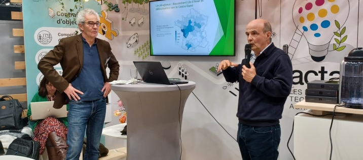 Xavier Pinochet et Philippe Gate lors de la conférence sur l'adaptation au changement climatique, sur le stand de l'Acta, au Salon international de l'Agriculture.
