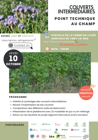 Terres Inovia et ses partenaires vous proposent une visite de plateforme dédiée aux couverts intermédiaires le jeudi 10 octobre 2024.