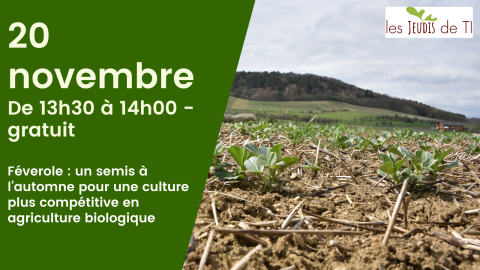 La féverole est très présente dans les assolements biologiques, particulier des bassins Centre et Grand Ouest. Mais les variétés disponibles aujourd'hui présentent toutes le désavantage d'avoir des fortes teneurs pour certains facteurs antinutritionnels et notamment la vicine convicine. Une solution afin de mieux s'adapter à la demande du marché serait de tester la faisabilité de cultiver ces variétés en les semant à l'automne et non au printemps. Dans le cadre du projet Cap Protéines +, Terres Inovia et ses partenaires ont engagé des premiers essais sur la campagne 2024-25 dont les résultats vous seront révélés à l'occasion de ce jeudi de TI.