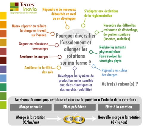 Les motivations à la diversification des productions sont variées. L’amélioration de la marge et la recherche d’un système de culture plus robuste au niveau économique, c’est-à-dire obtenant une marge suffisante et plus régulière d’une année sur l’autre, fait partie des principaux mobiles. Mais ces motivations sont très variées (voir schéma ci-dessous).