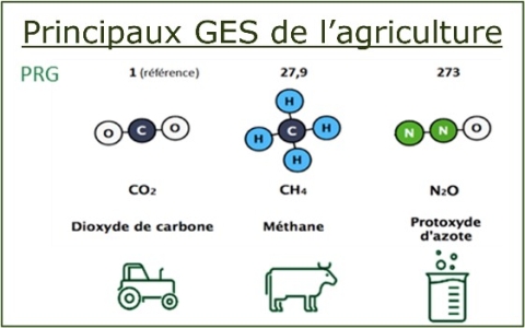 Le secteur agricole contribue pour 20,6% des émissions de la France, tous GES confondus (Rapport Secten 2022 du CITEPA. L’agriculture est un émetteur prépondérant pour les émissions de méthane (CH4) et de protoxyde d’azote (N2O), deux gaz à effet de serre qui ont les plus forts pouvoirs échauffants : en 2018, ce secteur représente de 68% des émissions de méthane françaises et 88,6% des émissions de protoxyde d’azote françaises. Les élevages sont les sources principales de méthane alors que les grandes cultures sont la source majeure de protoxyde d’azote en agriculture.