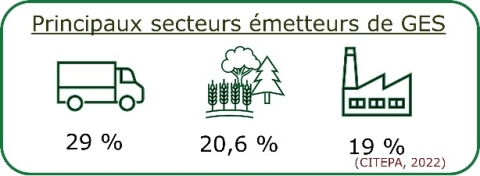 Figure : Les principaux secteurs émetteurs de GES en France (Source CITEPA 2022).