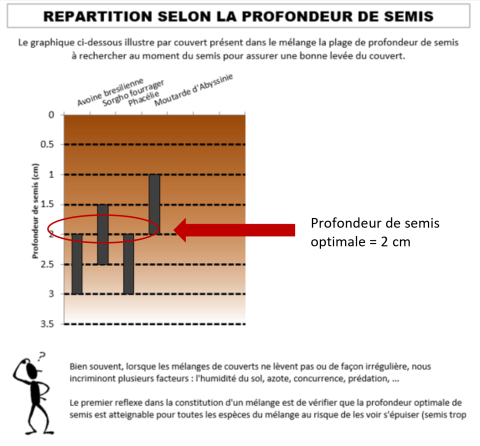 Figure 5. Choix de la profondeur de semis optimale du mélange. Par exemple, pour un mélange d'avoine brésilienne, sorgho fourrager, phacélie et moutarde d'Abyssinie, la profondeur optimale est de 2 cm.