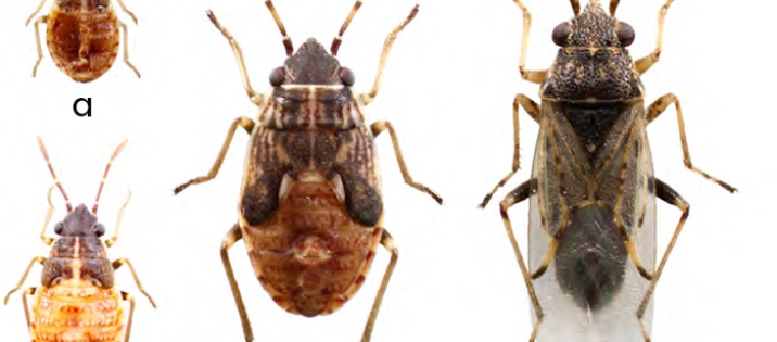 Les punaises colonisent les parcelles au stade larvaire. A ce stade, elles sont incapables de voler (absence d’ailes). Il n’est pas possible d’identifier précisément les larves, c’est pourquoi l’étude des adultes est incontournable pour connaître l’identité du ravageur. En 2019 et 2020, plusieurs espèces ont été identifiées par le laboratoire d’Eco-Entomologie à partir d’échantillons fournis par Terres Inovia et ses partenaires (GDA45 et AGRIAL) :