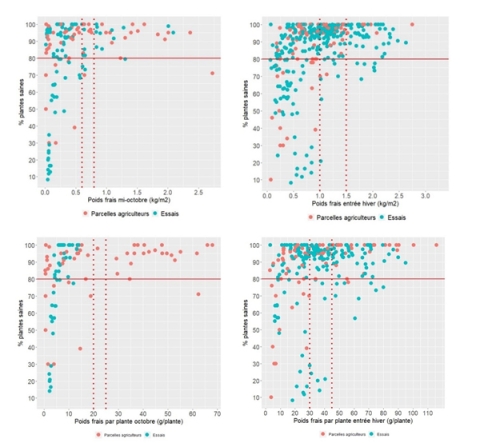 Cependant, au-delà de la biomasse entrée hiver, c’est bien la dynamique de croissance au cours de l’automne et à la reprise au printemps qui est importante pour limiter la nuisibilité des insectes, la biomasse à un instant donné n’étant qu’un indicateur partiel.
