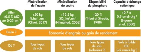 Figure 9 - Augmenter les teneurs en matières organiques du sol permet d’améliorer la fourniture de nutriments par les sols (Source Alain Bouthier Arvalis)