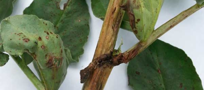 Lors de la floraison, des gonflements et des lésions marron-rougeâtres des tissus marquent la tige. Les pieds de féverole voient leur croissance perturbée et deviennent plus chétives. Les gousses peuvent éclater, les pétioles et les feuilles se nécroser.