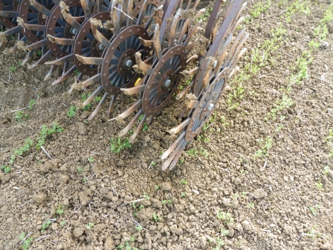 Utiliser la houe rotative sur lin oléagineux : https://www.terresinovia.fr/-/desherbage-mecanique-et-mixte-du-lin-oleagineux