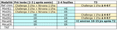 Cependant, le mixte avec herse étrille à l’aveugle puis Challenge 1 l/ha en post-levée (« mix 2 ») n’est pas satisfaisant, ce qui montre que la herse étrille en prélevée ne suffit pas, et le Challenge ne peut pas toujours exercer sa fonction de rattrapage lorsqu’il est appliqué en conditions sèches.