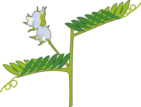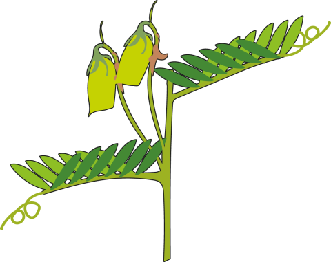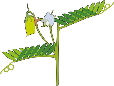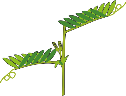 A partir du développement de la troisième feuille (stade 13, schéma ci-dessus), les nouvelles feuilles sont multifoliées. La foliole terminale de la feuille attachée au troisième nœud est complètement développée et la première feuille du nœud supérieur commence à se dérouler. Les feuilles mutlifoliées se terminent par des vrilles peu prehensiles, ne s'accorchant pas aux structures végétales à sa proximité.