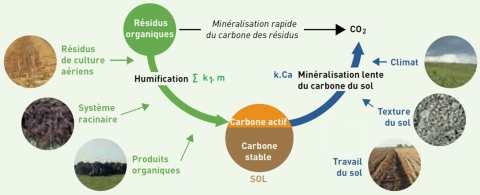 L'évolution des stocks de carbone organique dans les sols dépend des flux d’entrées et des flux de sorties de carbone.