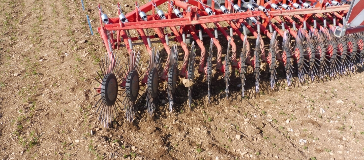 L’étrille rotative est efficace sur adventices jeunes (de germination à 2-3 feuilles) en les recouvrant de terre ou en les arrachant.