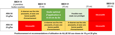 Noter que les références acquises jusqu’à présent ne nous permettent pas de recommander l’usage de FOX sur lin de printemps.