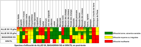 - CALLIPRIME XTRA, BASAGRAN SG, ALLIE SX, GRATIL et LONTREL SG pour le contrôle des adventices dicotylédones ;