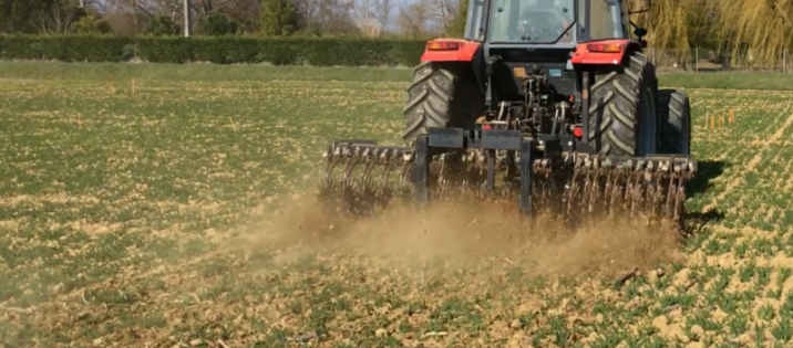 En cas de sols non limoneux, privilégier l’utilisation de la herse étrille, à tendance plus efficace que la houe rotative et moins exigeante en termes de stades des adventices. En revanche, en sol battant la herse étrille ne parviendra pas à rentrer dans le sol et la houe rotative est alors incontournable pour le désherbage mécanique en plein.