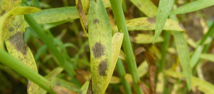 Développement plus tardif de la septoriose avec chlorose et nécrose sur les feuilles et les tiges