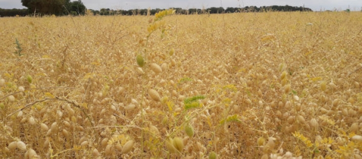 Le fauchage andainage permet d’homogénéiser la récolte (en se rapprochant des normes de commercialisation) tout en minimisant les graines tachées et les pertes. Il est tout à fait adapté aux cultures indéterminées comme le pois chiche. La récolte se réalise en deux passages, un pour le fauchage et la création de l’andain et un second pour la récolte, à l’aide d’un pick-up. On observe généralement 8 jours entre ces deux opérations culturales.