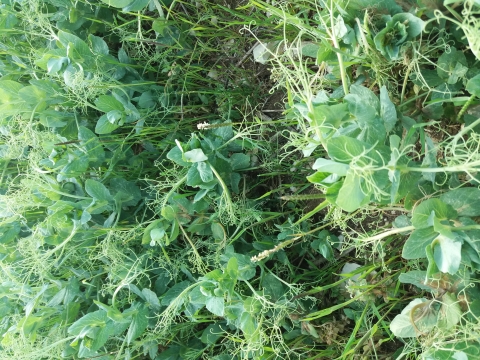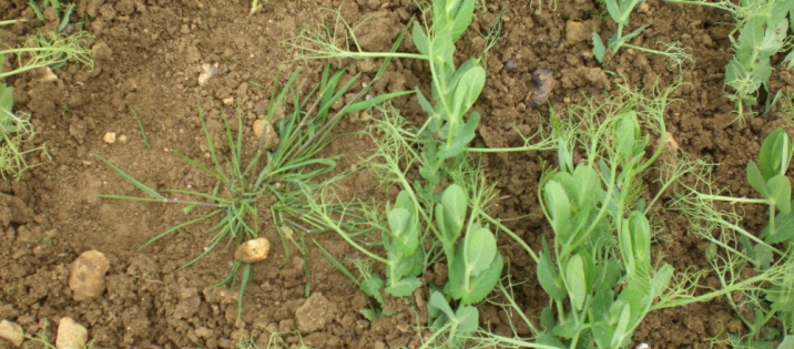 Graminées dans une parcelle de pois
